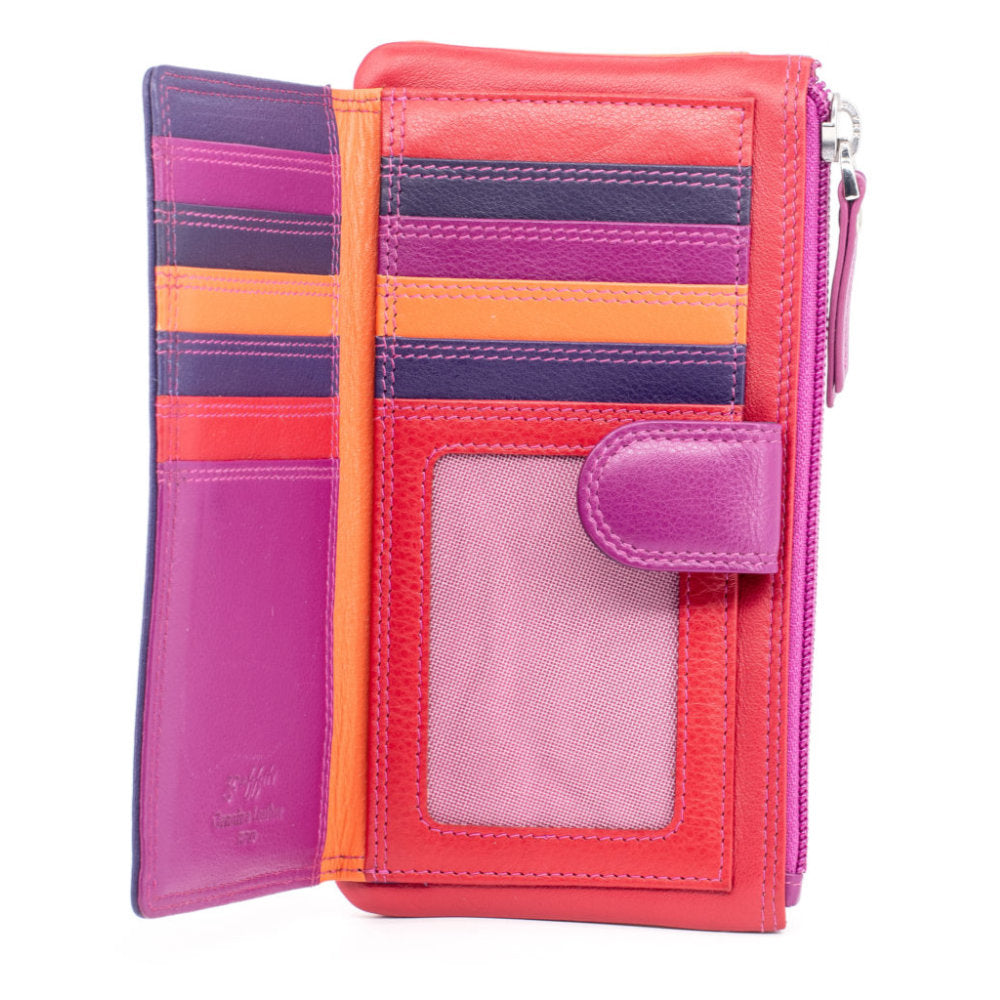 Description:17 x 9cmFull grain leather exterior / tab & zip fastening10 credit card capacity / 1 receipt pocket / internal identity windowExternal zip coin compartment2 note pockets