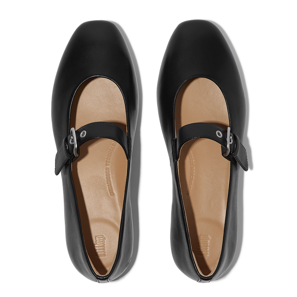 FitFlop - Delicato Leather Mary Ballerina - All Black - Shoes